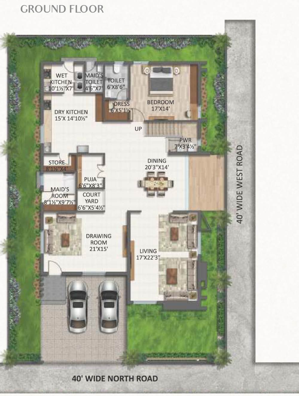 • 50′ & 40′ Wide Bt/Cc Roads, With Pockets Of Pattern Cement Tiles/Pavers.